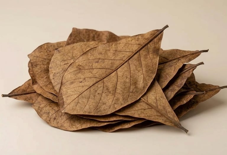 Naturally dried Indian almond leaves, rich in beneficial compounds, ideal for aquatic use and sustainably harvested for high-quality export standards.