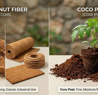 Learn the key differences between coconut fiber and coco peat, their uses, benefits, and why they are essential for agriculture and global industries.